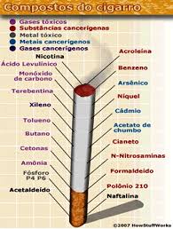 -> Nicotina: principal substância farmacologicamente absorvida durante o tabagismo. Ela age no sistema nervoso central, promovendo o vício e as alterações do estado de estimulação do mesmo. Após uma tragada essa substância chega ao cérebro em 10 segundos, sendo distribuída para todos os sistemas. Um fumante que traga 15 vezes um cigarro sofre com um maço, 300 impactos cerebrais de nicotina por dia. Nenhuma outra droga tem uma ação tão lesiva, profunda e rápida. Desta forma as substâncias inaladas espalham-se pelo corpo como uma injeção intravenosa provocando malefícios em todos os órgãos vitais. Dentre eles, estão: hipertensão, arterosclerose, impotência, angina, ...